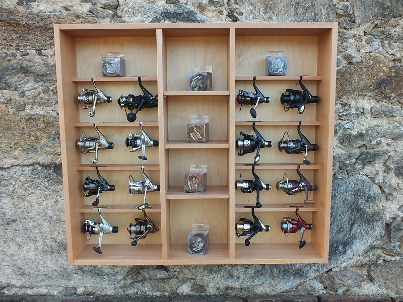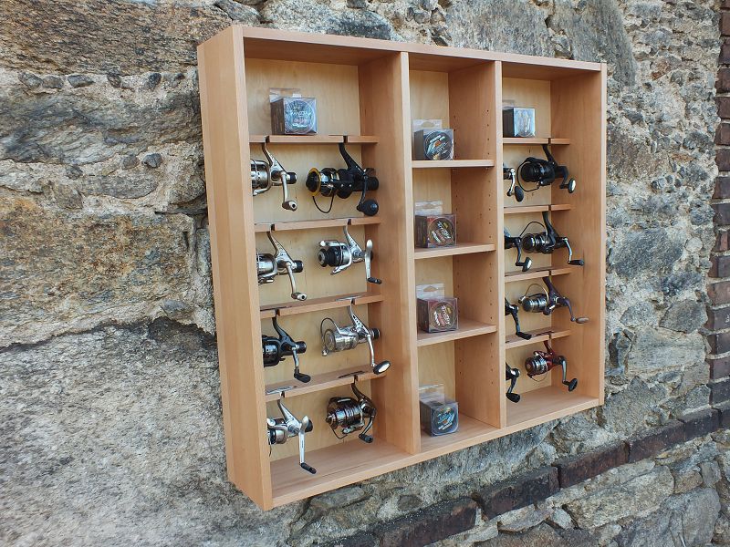 Dieses fantastische moderne Regal für Angelrollen & Spulen lässt jedes Anglerherz höher schlagen, es bietet Platz für 16 Angelrollen, aber auch kleine Accessoires können Sie übersichtlich aufbewahren.