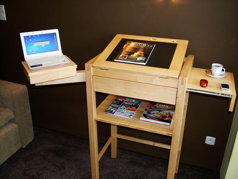 Multifunktions-Arbeitsstehpult mit Schublade, Ausziehfach und Schwenkarm mit Drehteller, lackiert oder geölt