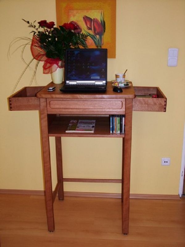 Dieses edle und vielseitige Stehpult bietet viel Platz dank seiner zwei seitlichen Schubladen und eines geräumigen Ablagefachs und kann so auch zu einem praktischen Minibüro werden.